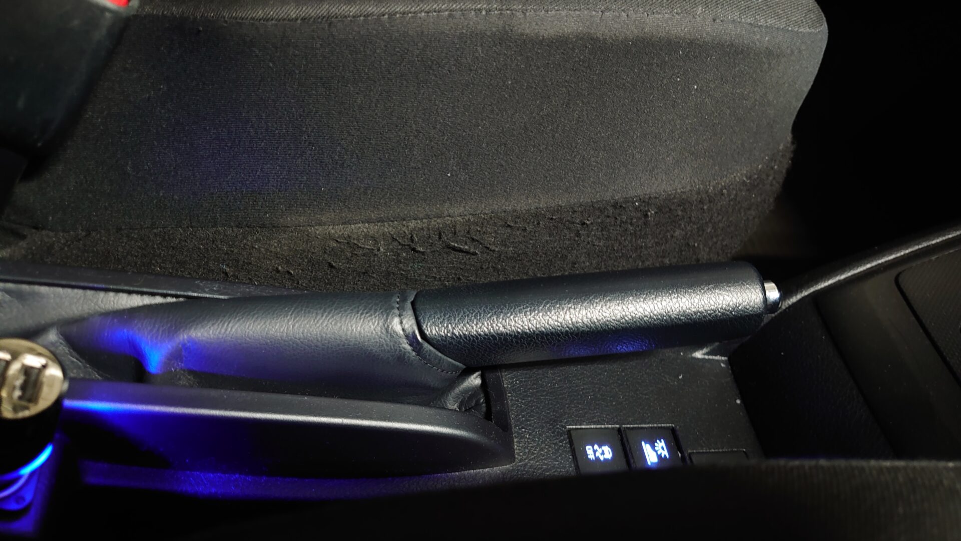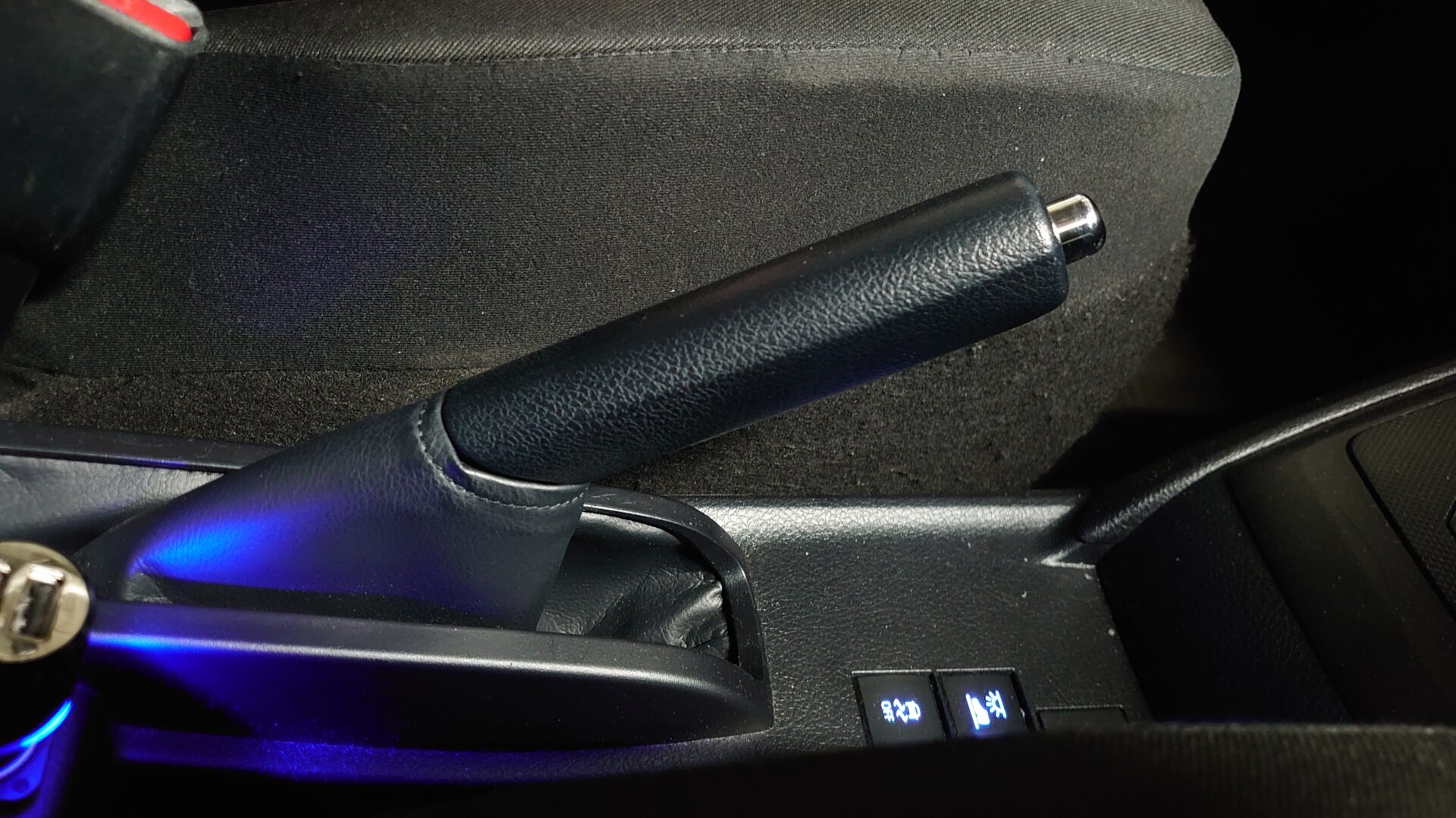 停止したらハンドブレーキを上げます。足踏み式の場合はパーキングブレーキを踏みこみ、電磁式の場合はスイッチでパーキングブレーキを作動させます。